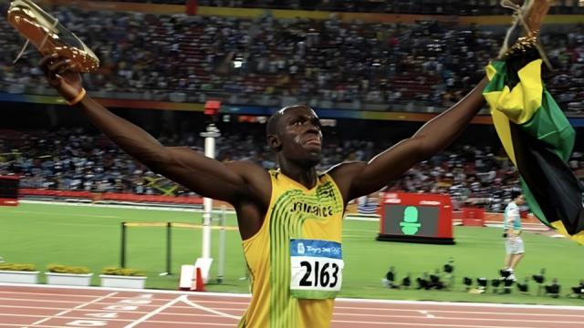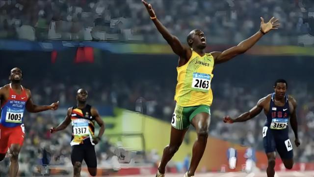 2008年8月16日北京鸟巢,博尔特以9秒69的惊人成绩打破男子百米世界纪录并夺金,他冲线前的“回头望月”成为当届奥运焦点,让人类极限的突破显得举重若轻,全球10.52亿人见证了这一伟大时刻;