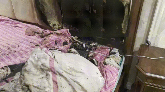 据说是电热水袋在充电时起火了,万幸的是没有造成人员伤亡。