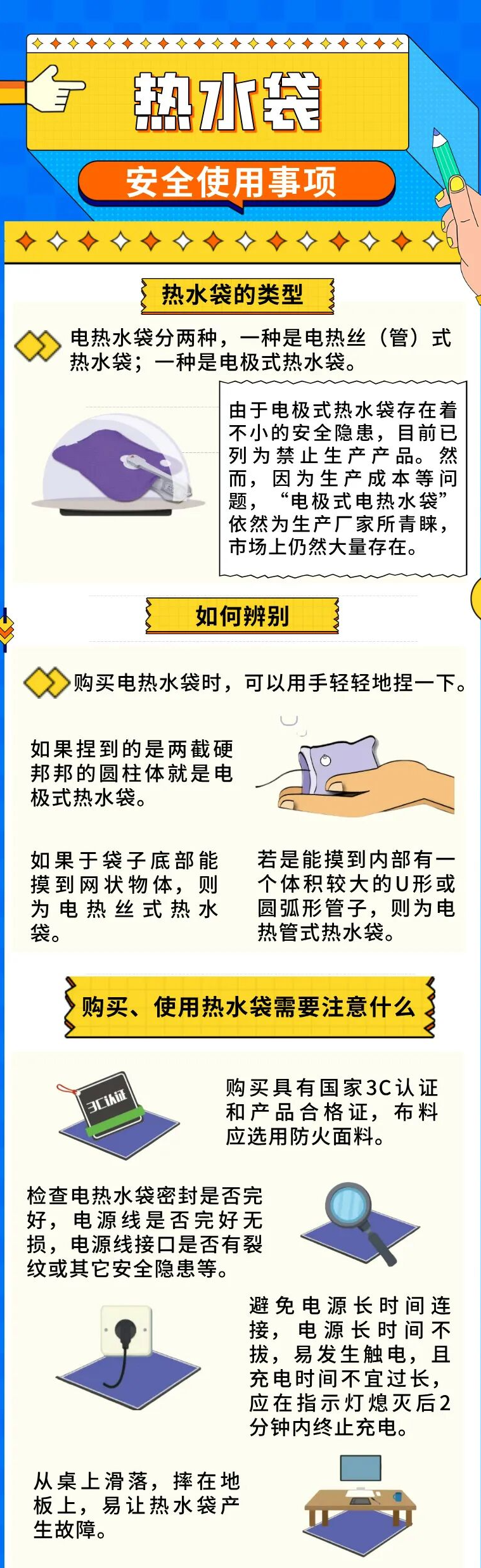 邢小牛提醒大家,日常生活中常用的电热水袋主要有三种类型,分别是电极式、电热丝式和电热管式。其中,经常引发安全事故的大多是电极式热水袋。