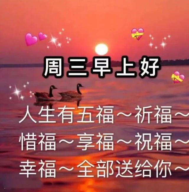 亲爱的朋友,周三已至,愿你的健康比大海宽广,快乐比微风轻盈,幸福比繁星璀璨。愿你的一天充满美好与祝福。