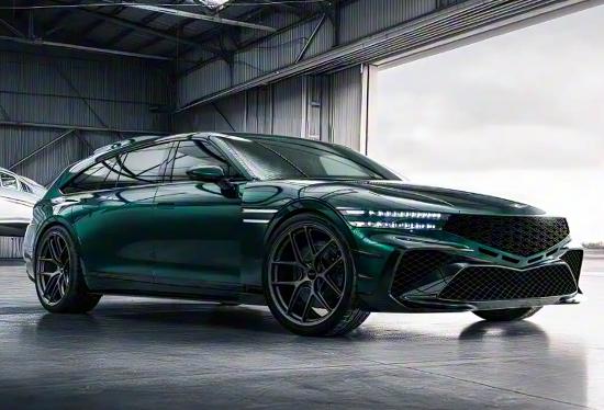 捷尼赛思G90 Wingback概念车采用低趴姿态设计,降低的重心结合修长车身,尽显旅行车的优雅气质。前脸延续品牌标志性的分体式大灯组与“盾型”前格栅组合,蜂窝状中网采用全黑化处理,配合前包围两侧的导流槽设计,运动感十足。