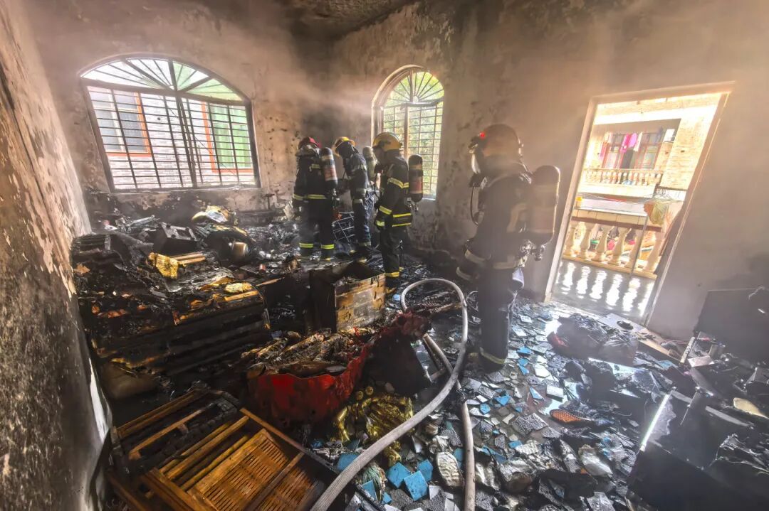 “我妈妈给手机充完电后,没及时把充电器从插座上拔下来,结果就爆火花起火了,把整个客厅都烧了。”户主李女士事后说道。