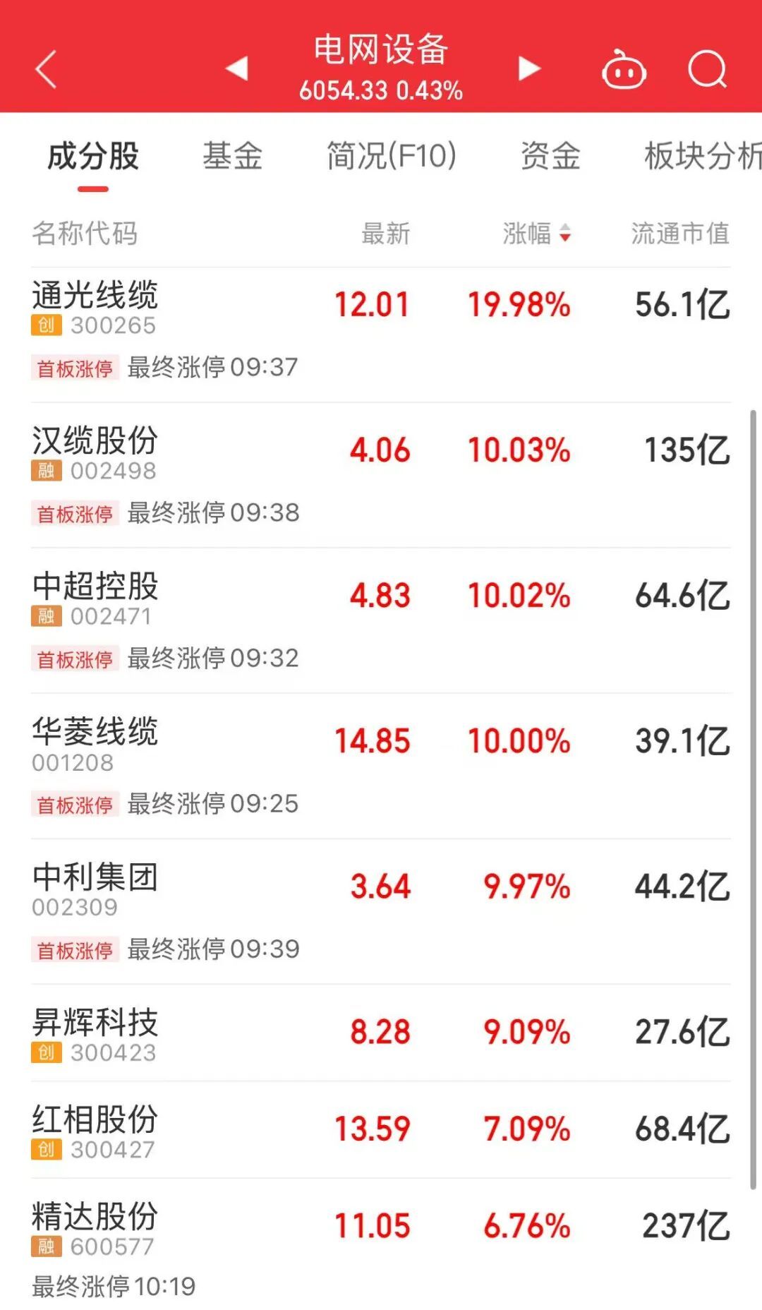 今日上午,电力基建产业链表现活跃,柔性直流输电、电网设备、特高压等板块均有上涨,通光线缆、中超控股等个股涨幅显著。