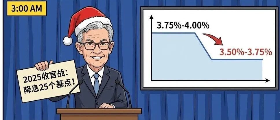 北京时间周四凌晨3点,大洋彼岸的美联储大佬们落下了2025年最后一场货币政策会议的帷幕。