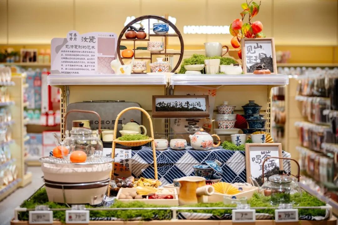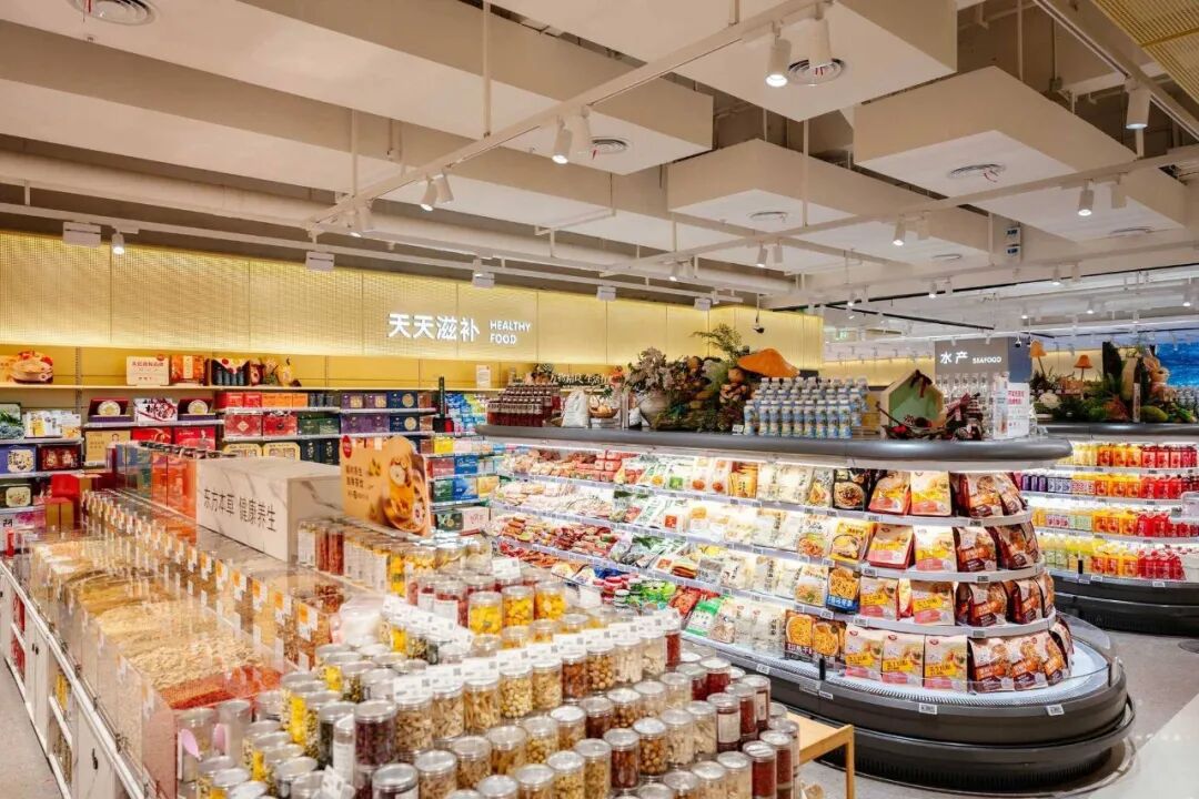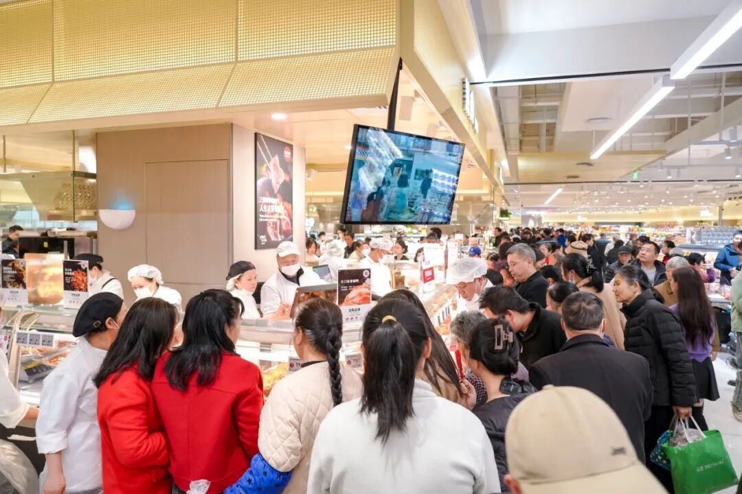 商品聚焦绿色健康可持续,上架了近1000款涵盖配料干净、有机、控糖等12类健康标签的商品,引入“药食同源”系列烘焙,并推出RPET购物袋等环境友好型商品。在健康商品矩阵的基础上,超市精选了千余款高性价比好物,带来“好物不贵”的消费体验;针对小家庭与单身客群,推出一人食鲜肉、精分切涮烤拼盘、小包装休闲日用品等特色商品,在减少消费冗余的同时,为顾客提供更自由的选择。熟化专区提供鲜活海产、进口和牛等优质食材的现场烹饪服务,打造“即选即做即食”的一站式餐饮体验。此外,门店还设有湖南特产区,汇集了酱板鸭、腊肉等丰富的本地特色商品。