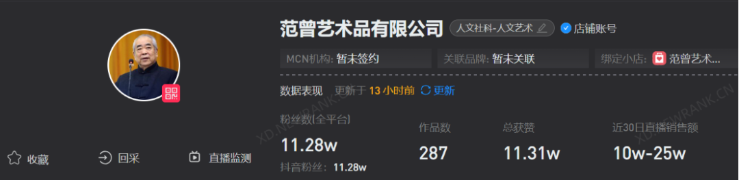 耐人寻味的是,在范曾发布断绝关系声明的同一时段,这家公司的抖音直播间仍在正常开播。