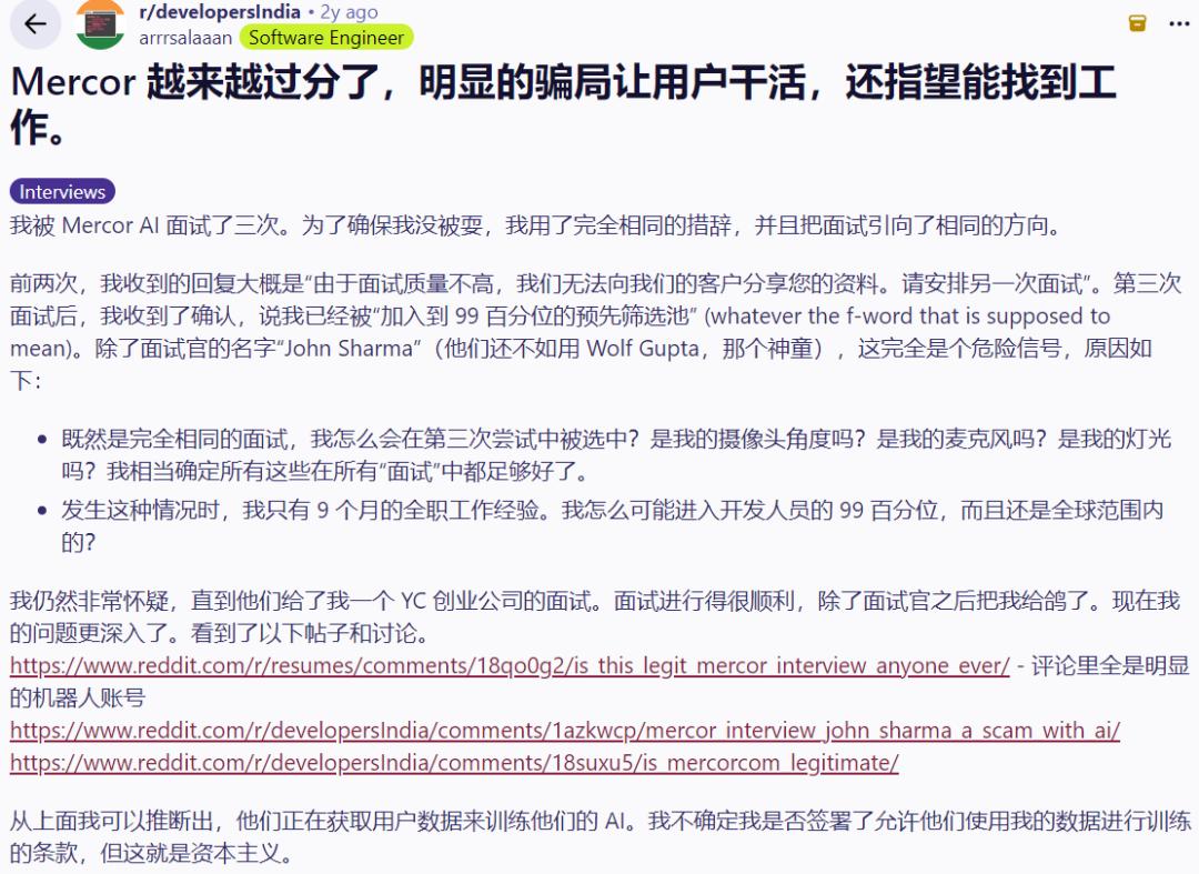 Mercor的崛起,是因为抓住了公开数据耗尽的缝隙:直接从个体挖掘隐性知识。它一边用高薪吸引人,一边通过压低时薪、频繁更换项目等方式压缩成本。