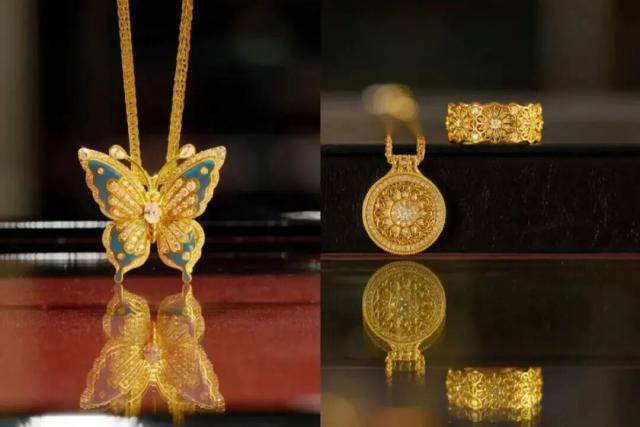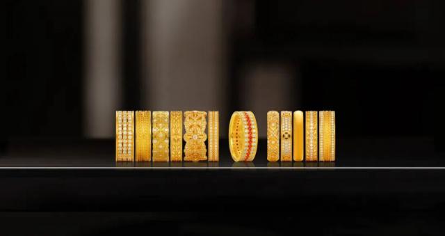 设计上,老铺黄金不追逐猎奇,始终从中国文化经典元素、审美之“根”汲取养分,把控审美高度,在形制、纹样、色彩等维度创造性转化与升华。