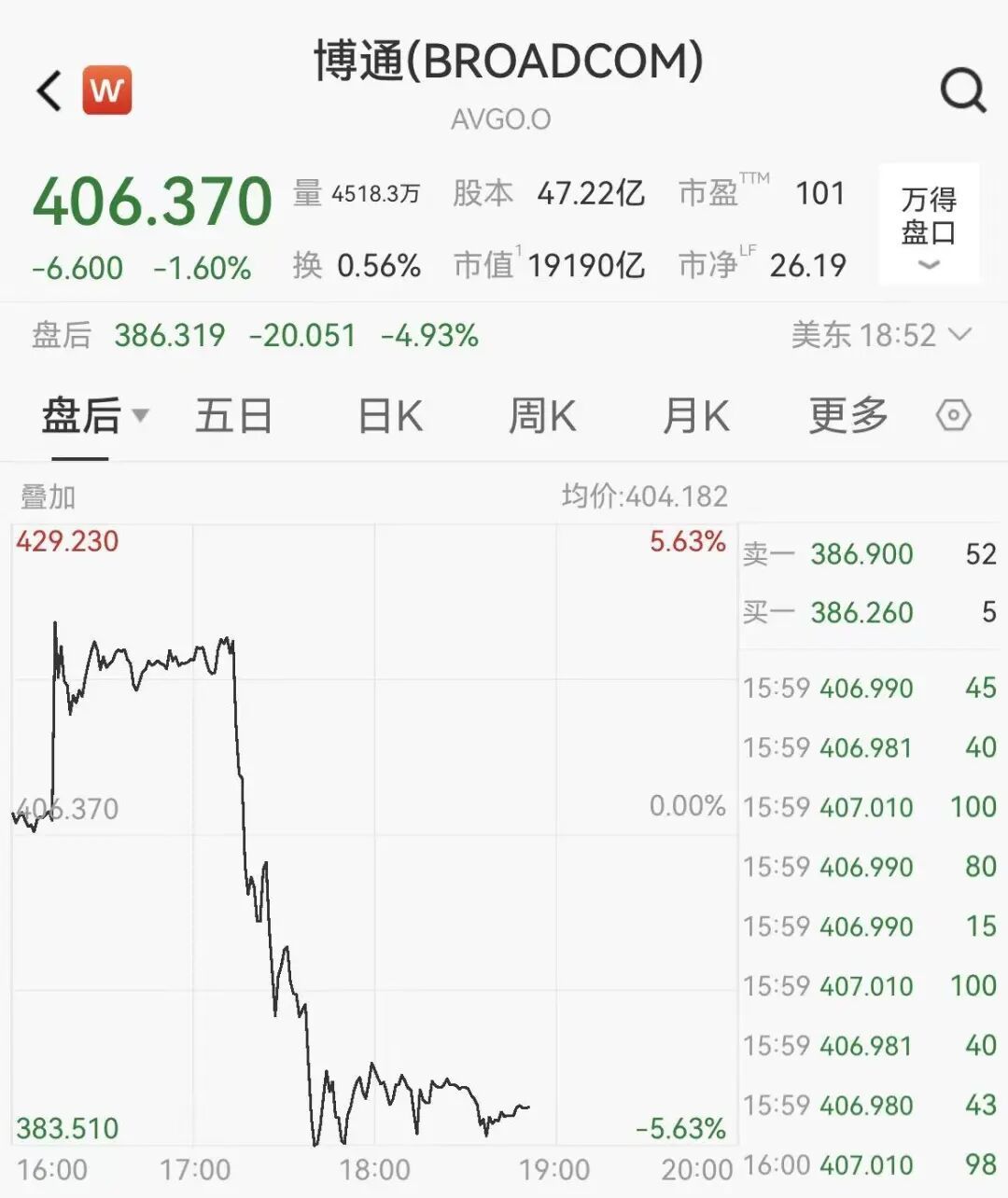 科技股普跌态势下,博通盘后跌幅扩大
