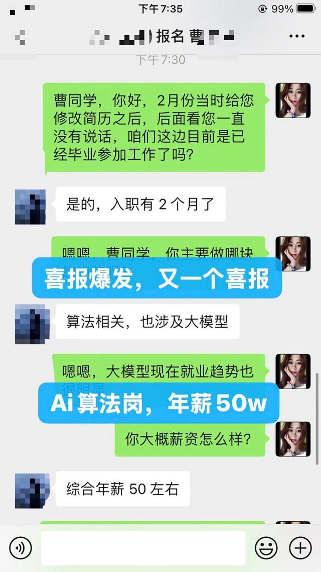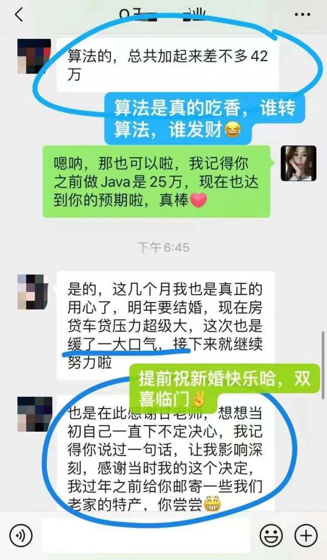 【1】王同学:4年Java开发转型算法岗,本科,年薪从25w涨至42w,涨幅68%。系统学习的优势:老师带学项目、售后热情、大厂内推机会多,易拿高薪。