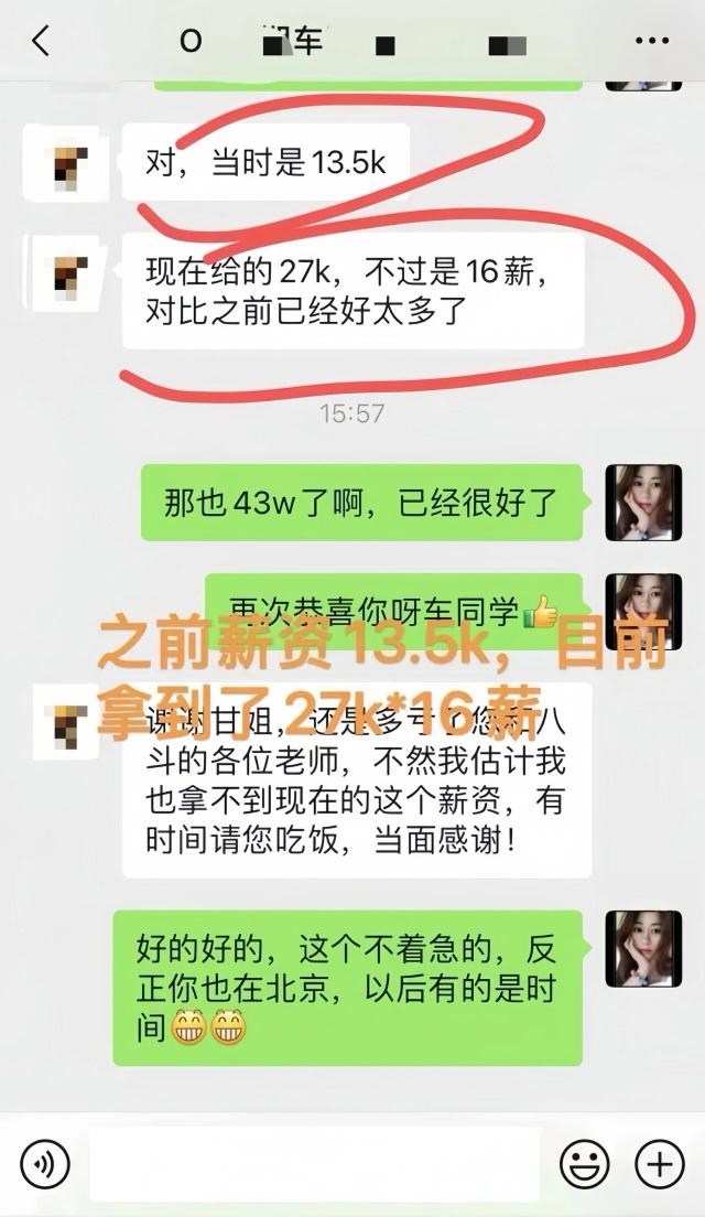 【5】车同学:内推至腾讯NLP算法岗,薪资从13.5k升至27k*16薪,年薪近翻3倍。