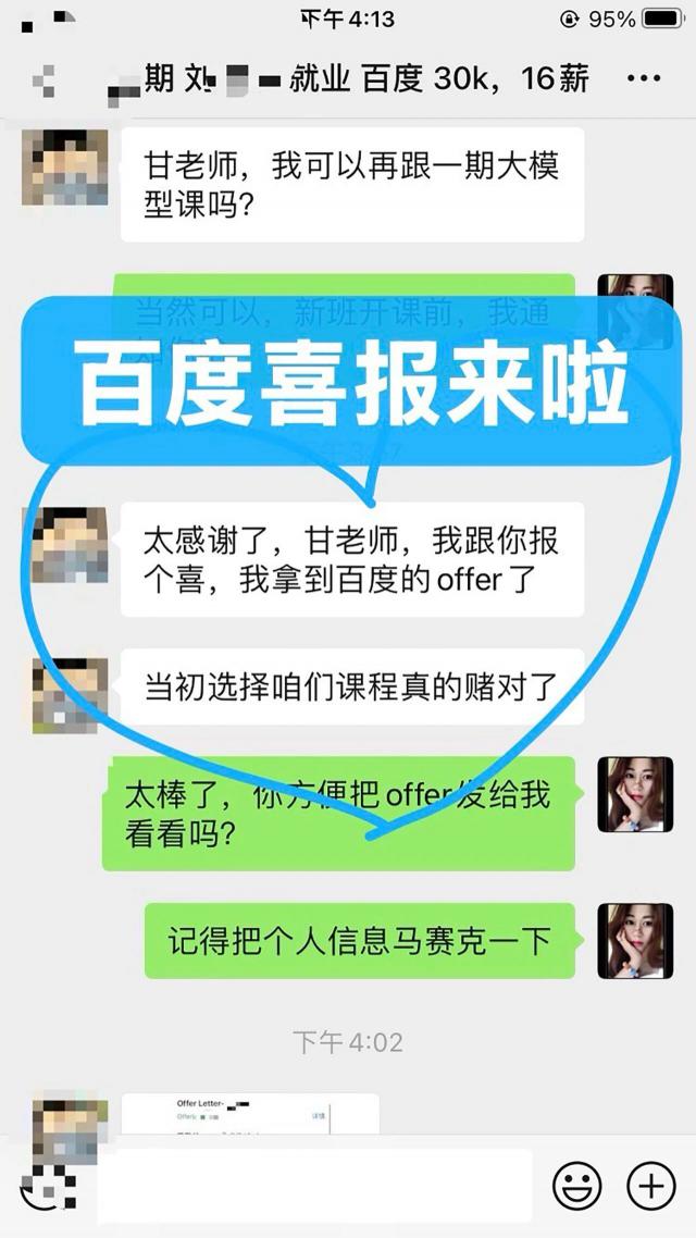 【3】刘同学:应届生拿下百度大模型算法岗offer,年薪48W,赢在AI时代起跑线。