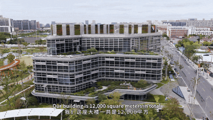 随后,“体验官”走进了科技感满满的长三角一体化绿色科技示范楼——这也是上海地区单体建筑面积最大的近零能耗建筑。其外观线条现代流畅,大面积的玻璃幕墙与周围自然环境相互映衬、和谐相融,建筑内部更是暗藏多项绿色创新技术。