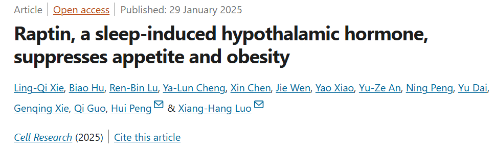 2025年1月,中南大学湘雅医院等机构的研究人员在《细胞研究》期刊上发表的一项研究找到了关键原因:一种名为“Raptin”的新型睡眠激素,它能在睡眠时抑制食欲,帮助控制体重。