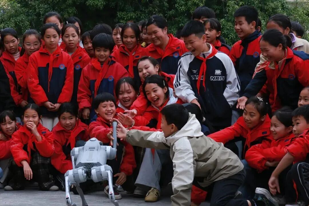 “3D科普展”区域前,孩子们戴上特制的3D眼镜,纷纷惊叹于立体世界的神奇与奥秘;而憨态可掬却又本领高强的“机器狗”一登场,就立刻成为了全场的焦点,它灵活的互动表演引来了同学们阵阵欢呼,让孩子们在欢声笑语中真切感受到了人工智能的独特魅力。
