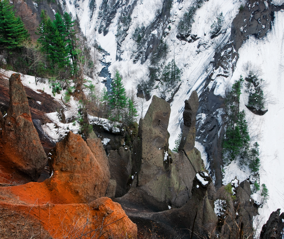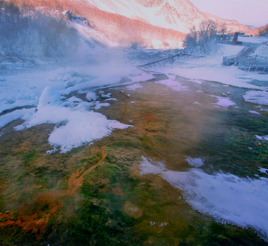 冰雪与温泉在这儿奇妙共存,红褐、翠绿、幽紫、金黄的矿化层,像一幅天然油画垂挂在大峡谷间,每一处都是时光流淌过的痕迹。