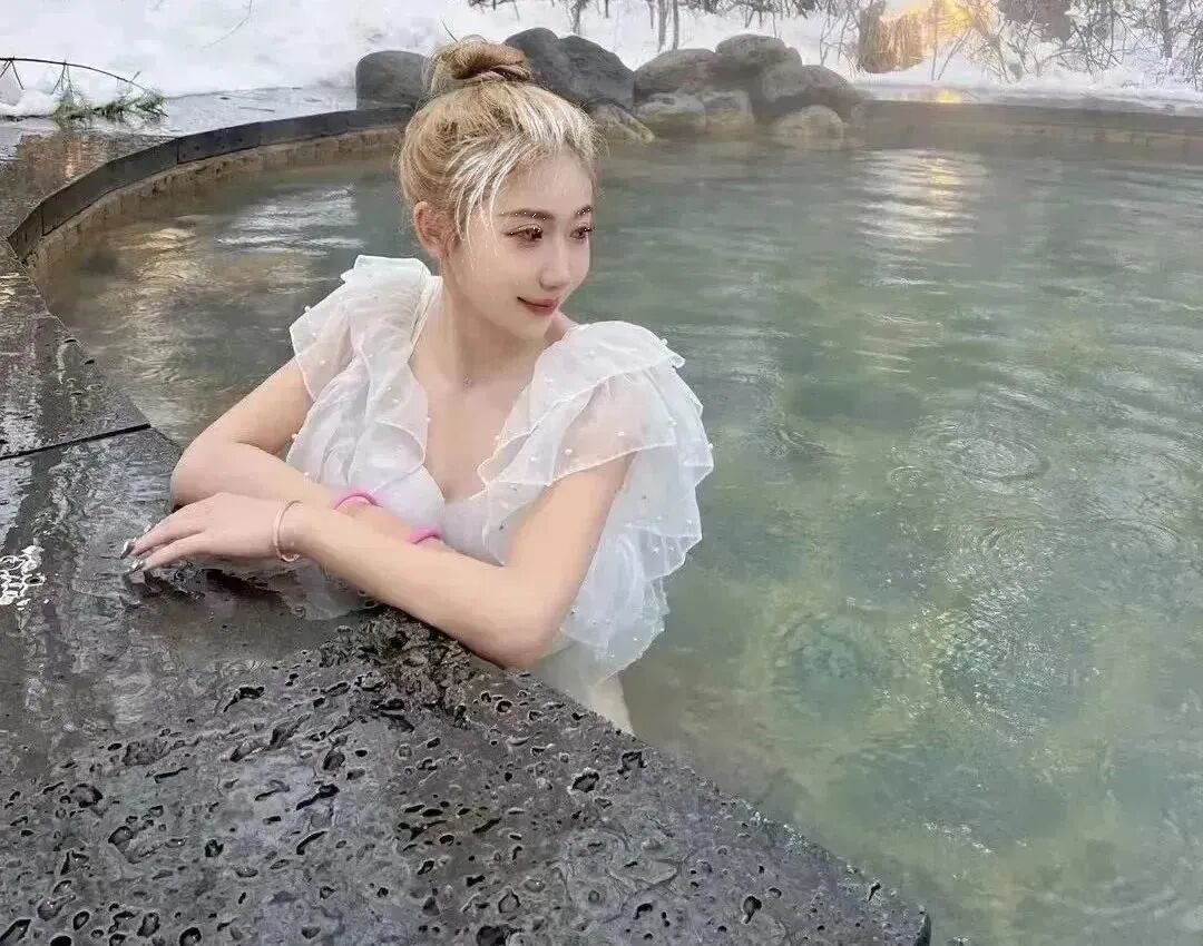 还有奇妙“魔法”:从温泉起身时,热气腾腾中发型竟变成雾凇状。