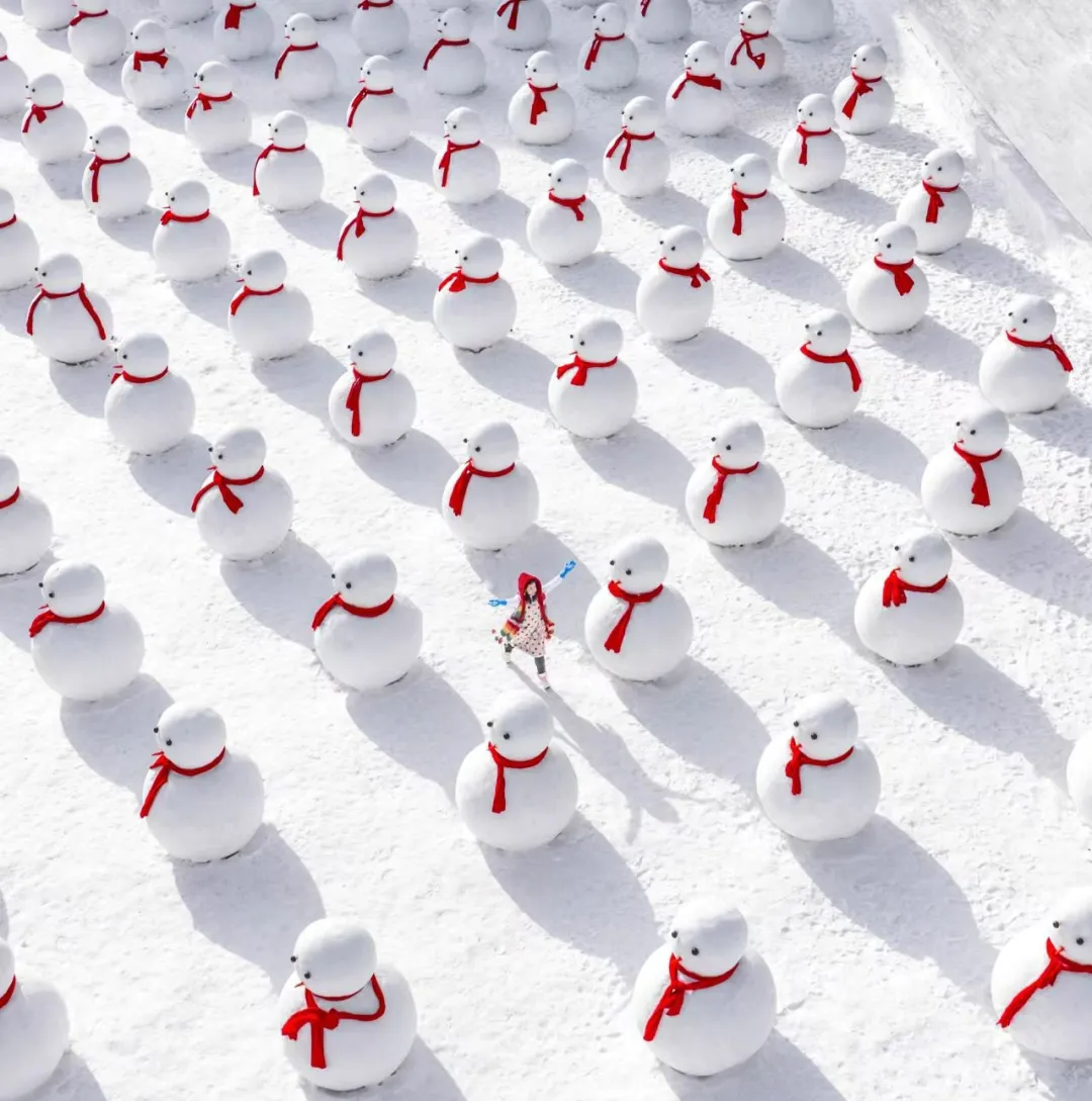没有雪人的冬天不完美,森林白雪中的雪人军团带来满满治愈感。