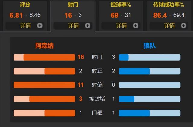 这场榜尾对决充满悬念,阿森纳在场面上占据绝对优势,控球率高达69%,射门次数16次,是狼队3次射门的5倍多,但两队射正次数均为2次,可见阿森纳进攻效率之低。值得一提的是,阿森纳作为领头羊此役未能打入一粒运动战进球,狼队却贡献了3粒进球(其中2粒为乌龙球),最终比分却是阿森纳2-1绝杀狼队。尽管比赛过程艰难,但阿森纳还是拿到了关键的3分,展现了争冠球队的韧性。不过,球队进攻端的问题仍需解决,否则在漫长的赛季中可能会丢分。身后的曼城拥有丰富的争冠经验,曾三次获得亚军的阿森纳需要更加专注,才能稳固领先优势。