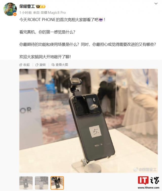 此外,荣耀在今年10月展示了一款名为“ROBOT PHONE”的概念手机,机身顶部配备可伸缩摄像头及内置云台,主打“AI场景+Pocket”功能,针对生产力场景进行优化,能满足直播与创作需求。