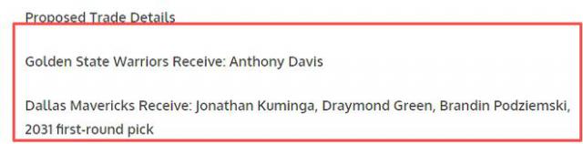 独行侠得到:乔纳森·库明加、德雷蒙德·格林、布兰丁·波杰姆斯基、2031年首轮签