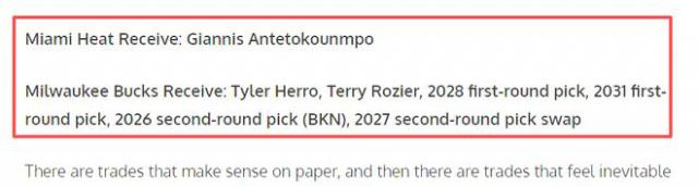 雄鹿得到:泰勒·希罗、特里·罗齐尔、2028年首轮签、2031年首轮签、2026年次轮签(篮网)、2027年次轮签交换权
