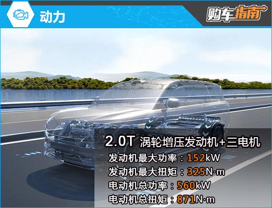 动力性能上,新车搭载2.0T涡轮增压发动机+三电机插混系统,发动机最大功率152kW,峰值扭矩325N·m;三电机综合最大功率560kW,综合峰值扭矩871N·m,CLTC纯电续航230km,综合续航里程达1300km。
