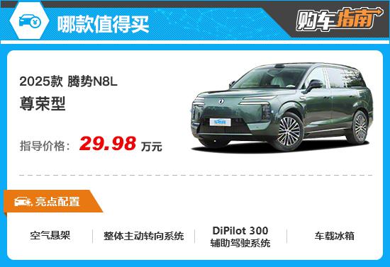 综合各方面因素,2025款腾势N8L尊荣型在配置丰富度、性价比与实用性上表现更为均衡,是多数消费者的最优选择。