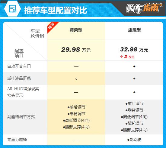 对比两款车型配置可知,顶配旗舰型在尊荣型基础上增加了多项高阶配置,虽能提升科技感与乘坐体验,但这些配置多为锦上添花,对日常用车体验的核心提升有限。此外,旗舰型独有的后排液晶屏尊荣型也支持选装,结合3万元的差价来看,升级性价比不高。