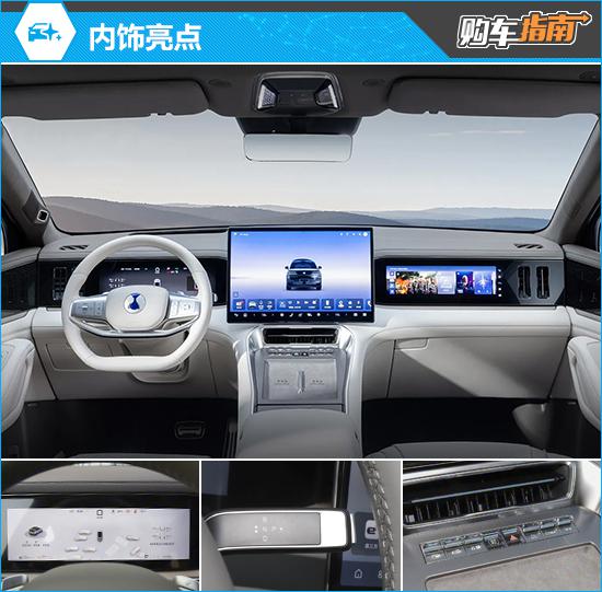 内饰设计注重质感与科技感的平衡,通过细腻材质与和谐色彩搭配打造舒适座舱。13.2英寸液晶仪表、17.3英寸中控多媒体屏与13.2英寸副驾娱乐屏组成三屏交互系统,实现信息无缝流转与高效人机互动。配置方面,冷暖冰箱、自动空调、20扬声器帝瓦雷音响系统等舒适性配置一应俱全,全方位满足驾乘需求。