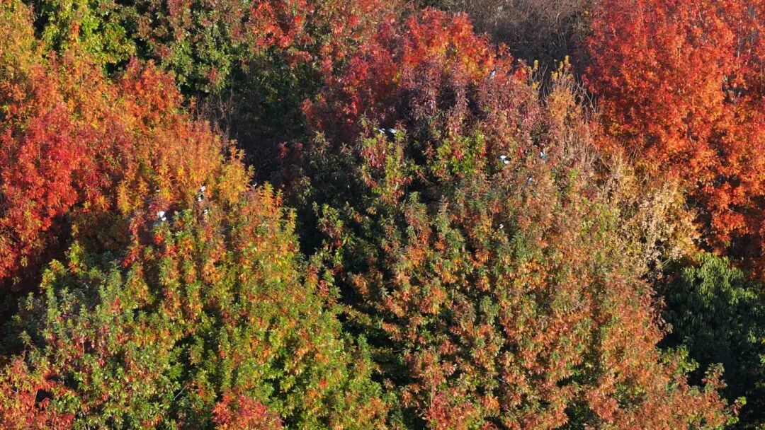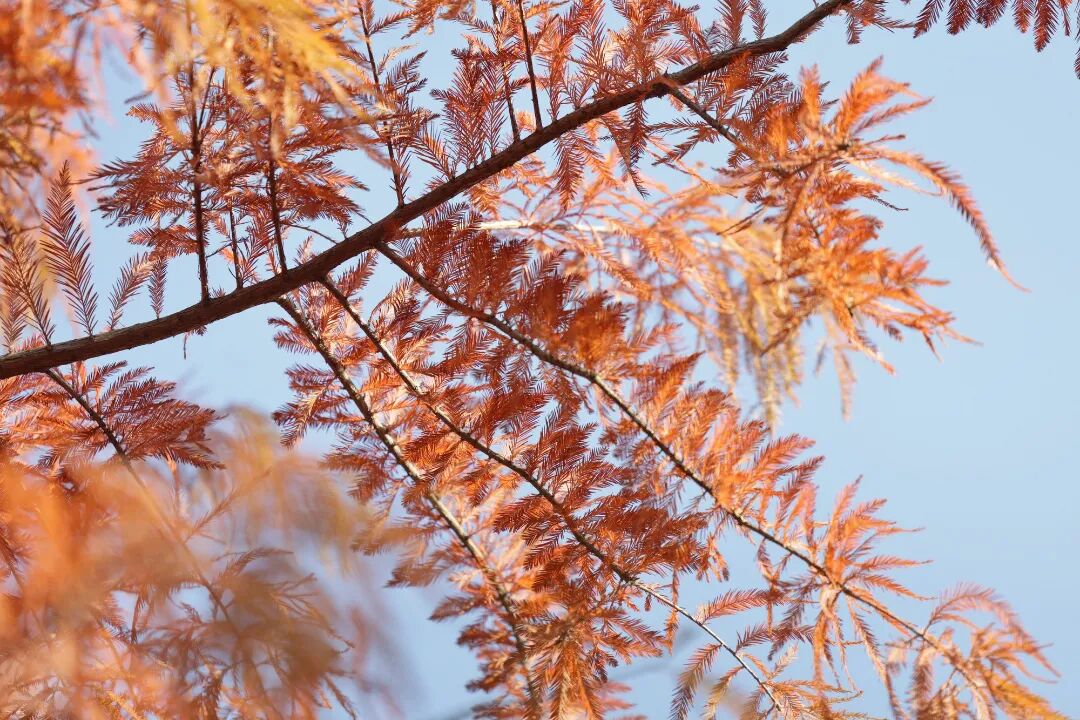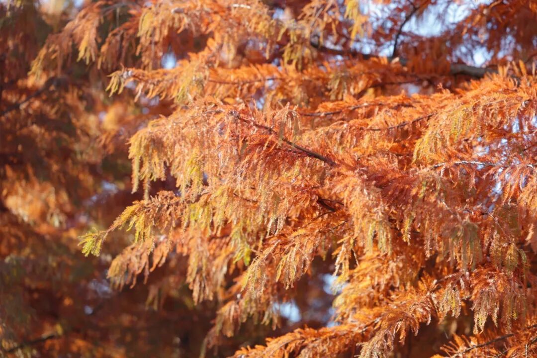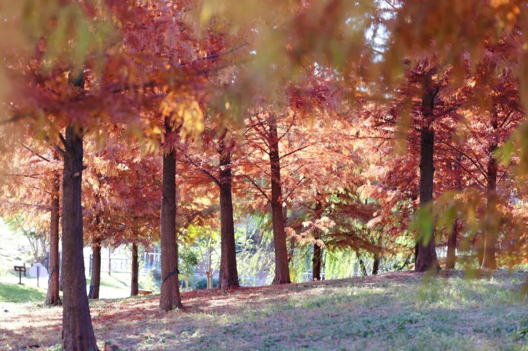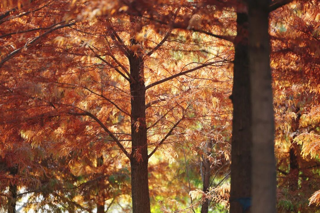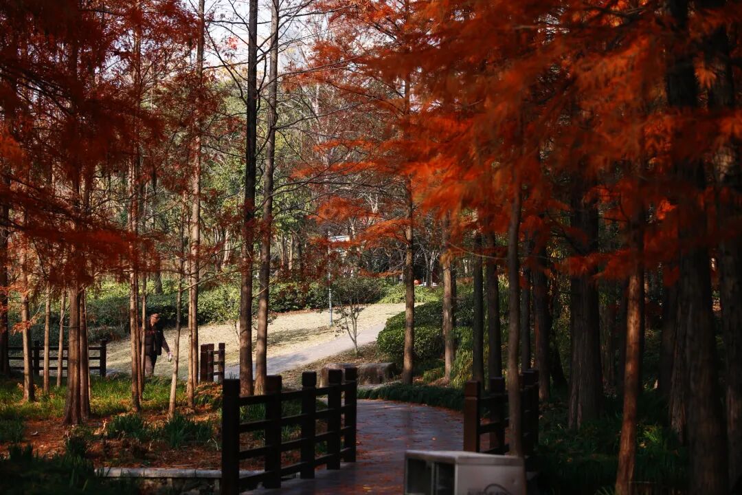 外冈镇葛隆林地公园的杉林,近日也迎来了一年中最绚烂的时节。它们悄然换上红妆,交织成一片令人沉醉的童话森林。