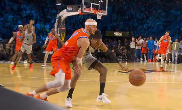 第一次争议判罚发生在比赛仅剩3.3秒时,裁判判定卡鲁索对瓦塞尔犯规,卡鲁索对此判罚感到委屈。裁判报告解释称,卡鲁索在防守时用手臂勾住了瓦塞尔的身体侧面,这一动作干扰了瓦塞尔的身体平衡,同时影响了他接边线发球后的控球能力,因此判定为防守犯规。