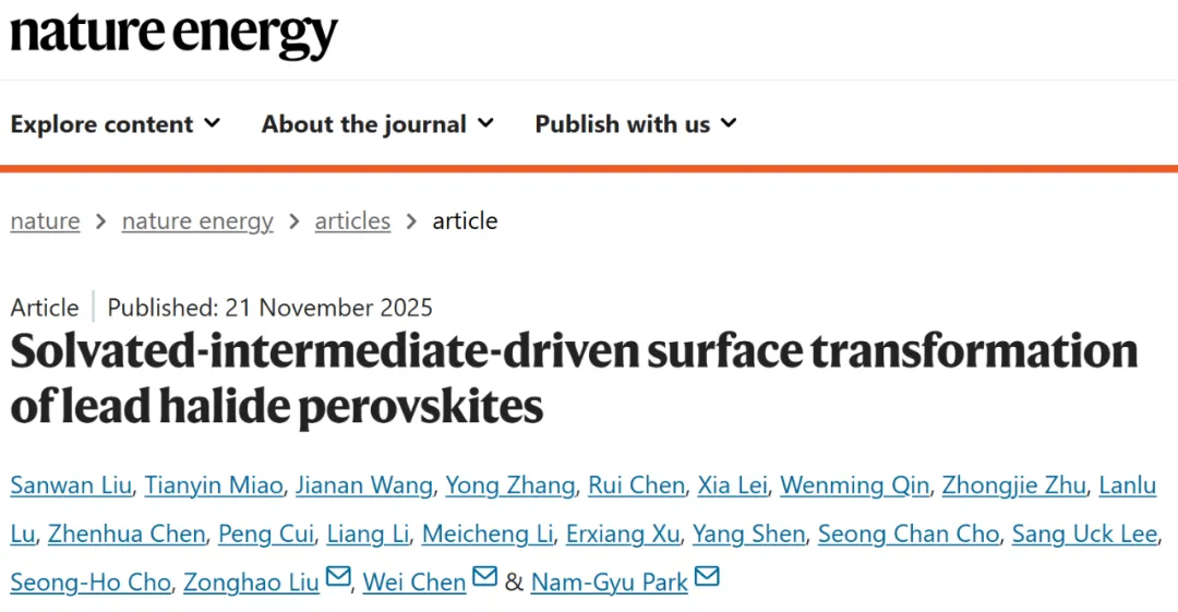 【复材前沿】华中科技大学团队在Nature Energy发表研究,突破倒置钙钛矿太阳能电池效率瓶颈