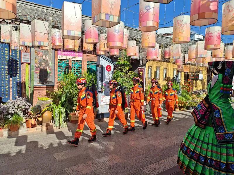 保山消防:深入景区景点、人员密集场所等地,排查火灾隐患、宣传消防知识、培训灭火与逃生技能。