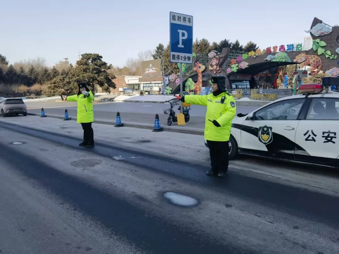 白山长白交警针对节日期间车流人流集中、路面易结冰的实际,科学部署警力,将重点路段列为管控重点,在易积雪结冰路段采取定点值守与动态巡逻相结合的方式,实时互通信息、处置突发情况,筑牢安全防线。