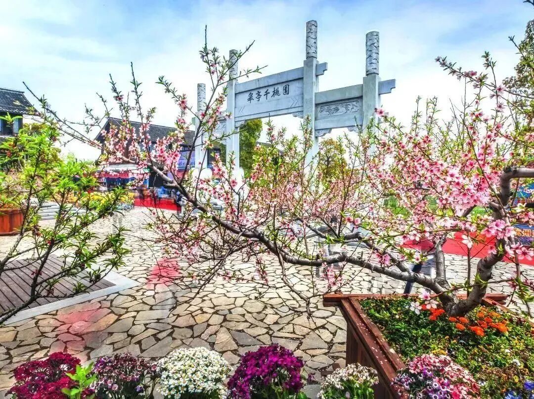 公园以上塘河旅游线为依托,以“桃”文化为景观特色,是集休闲、旅游、观光于一体的市级综合性公园。空间格局为“一带两翼三片”,从东到西分为田园养生、古埠村韵、桃园水乡三个功能区,建筑以江南传统民居为主,模仿自然村落布局。绿化遵循“四季常绿,四季有花”原则,保留原有大面积绿化和乔木,搭配香樟、杜英等常绿树种,重点突出“桃”文化景观。