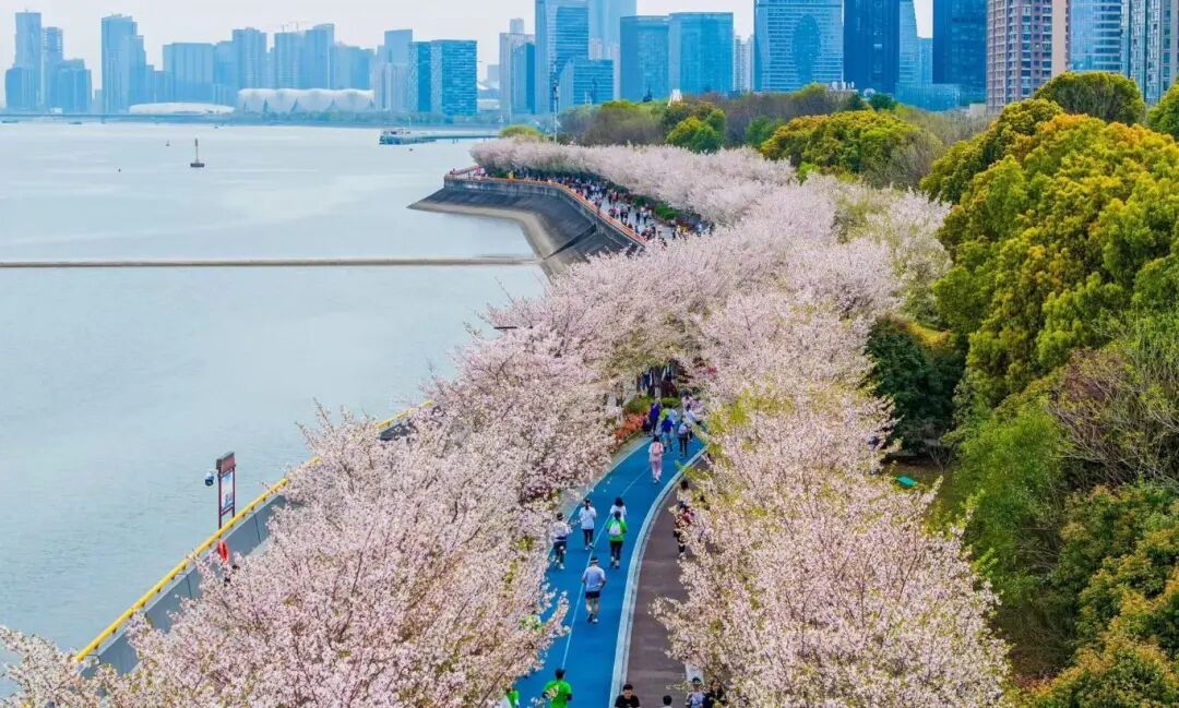 位于滨江区浦沿段沿江景观带,绿化疏朗,江景开阔,停车方便,周边配套日益成熟,是周末带娃休闲的热门地。可开展休闲游憩、儿童游戏、运动健身等活动,植物以樱花和紫薇为特色,分别在春季和夏季盛开。