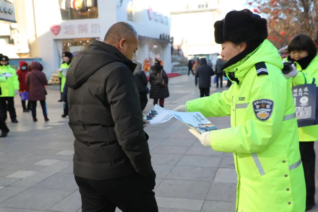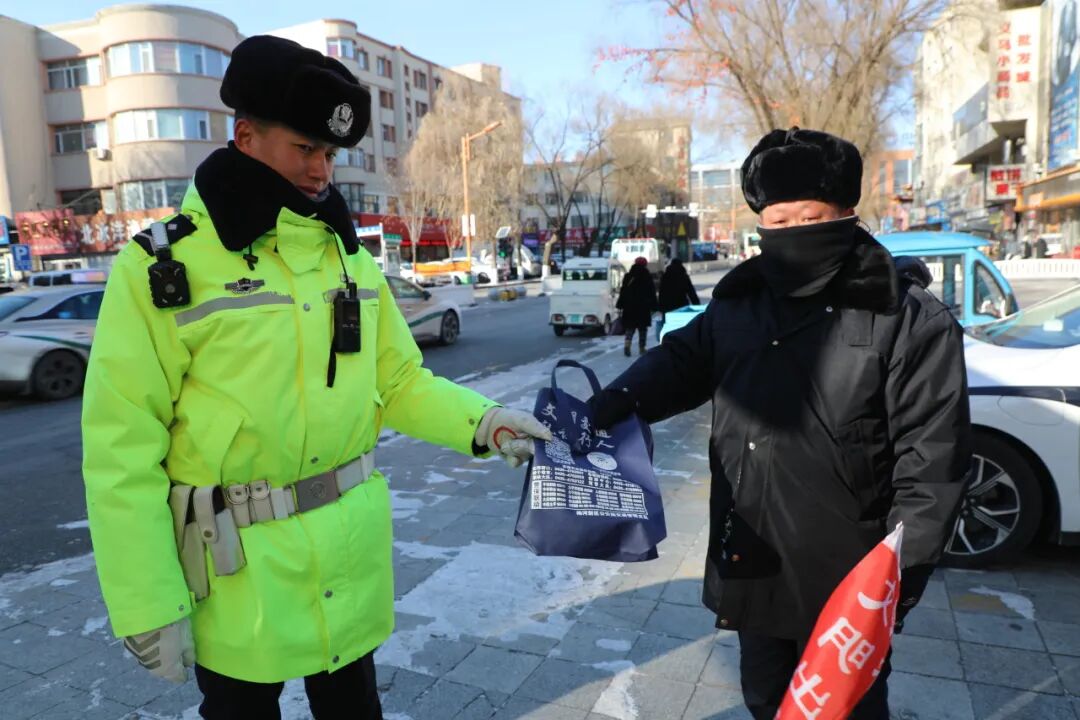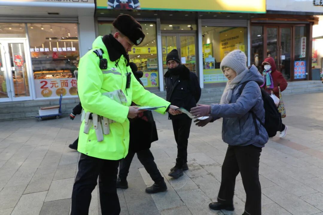 为增强群众节日出行的交通安全意识,防范冬季道路交通事故,梅河新区公安局交通管理支队利用元旦假期群众赶集购物的契机,组织警力走进步行街年货大集,开展以“赶大集、送平安”为主题的交通安全宣传活动,把安全理念融入烟火气,传递到群众心中。
