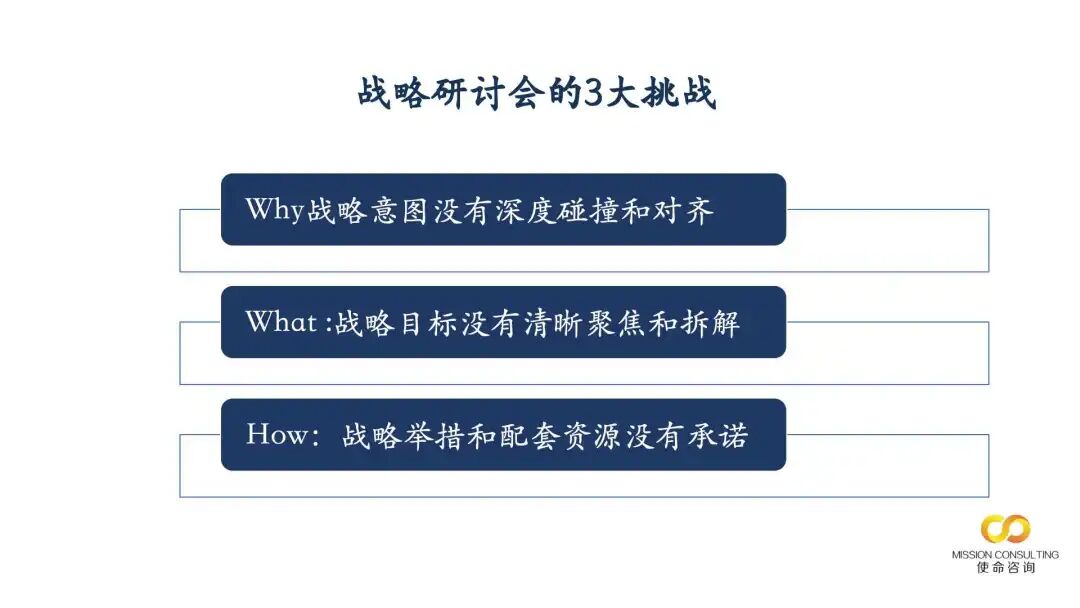 这样的战略研讨会,若战略意图未经过深度碰撞与对齐,战略目标没有清晰聚焦与拆解,战略举措及配套资源缺乏明确承诺,那么会后战略难以执行便是必然结果。