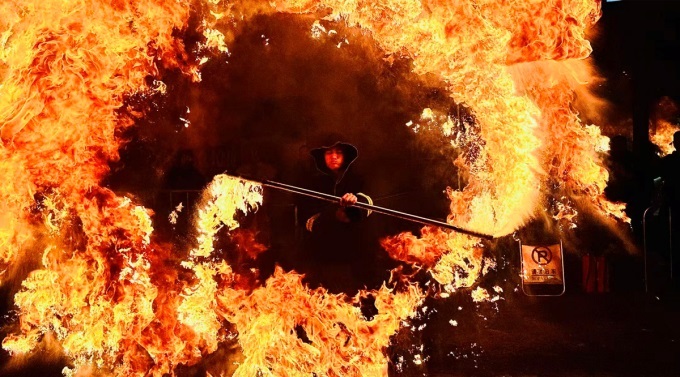 传统与科技碰撞:狮王争霸赛展现实力,非遗火壶、打铁花、英歌舞、变脸、飞天舞、民族巡游演绎古法浪漫,无人机灯光秀搭配冷焰火、焰火瀑布,构成璀璨夜空。