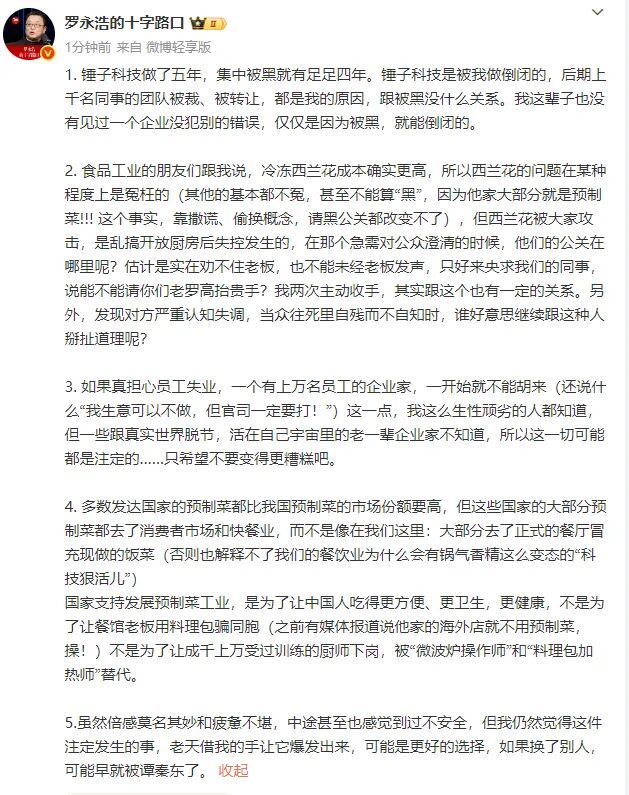 罗永浩回应贾国龙朋友圈争议:企业经营问题需理性看待,勿困于主观认知