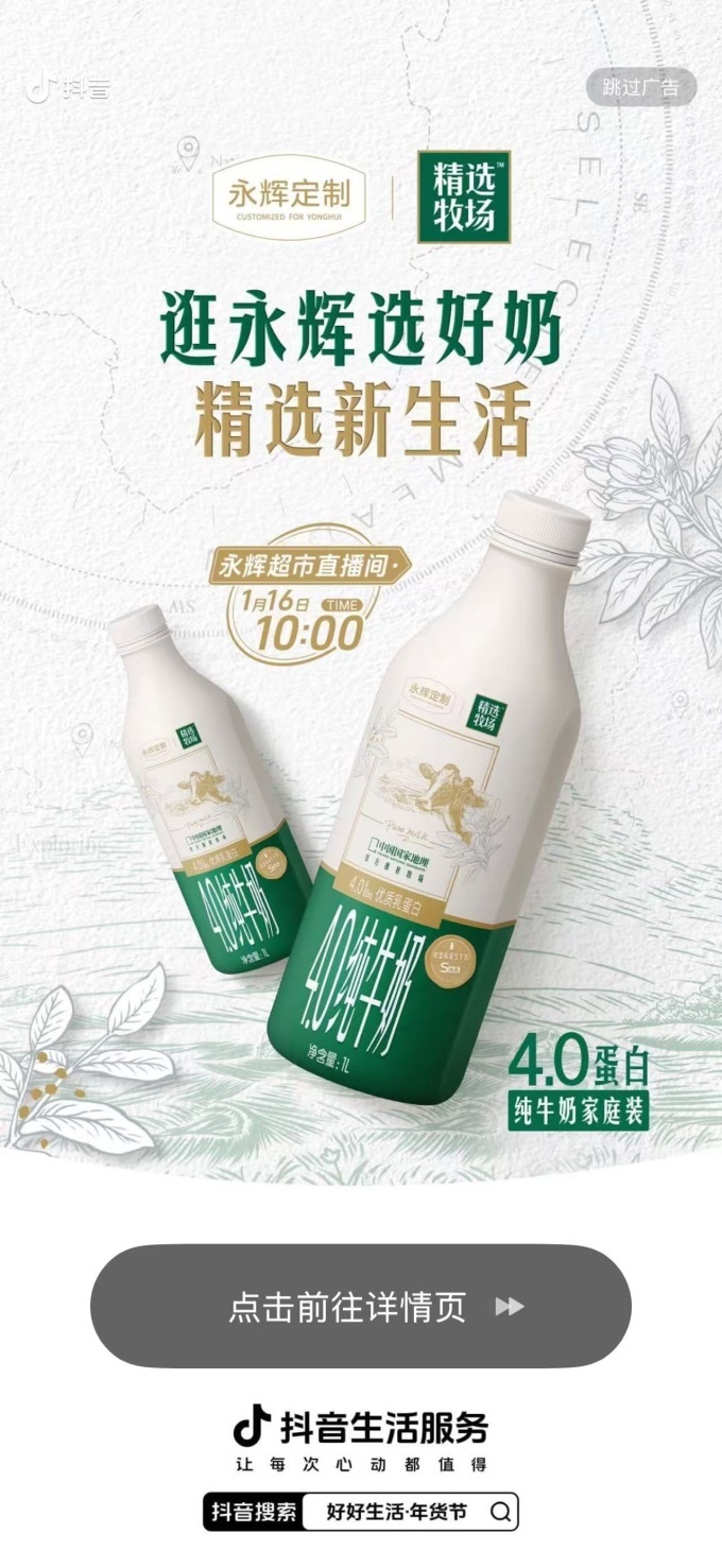 在营销和体验方面,永辉正在构建线上线下融合的新消费触点。据悉,永辉联合蒙牛与抖音平台,打造“品牌+渠道+平台”三方联动模式。借助抖音生活服务和内容生态,实现品牌高曝光,同时赋能线下交易转化,旨在完成从线上种草到线下体验的交易闭环,达成三方共赢。另外,为持续加强消费者认知和体验,永辉计划在全国门店开展“mini秀”及试饮活动,让更多顾客直观感受产品的品质魅力。