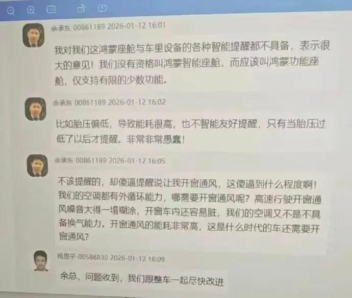 余承东痛批鸿蒙座舱:智能不足,功能有余