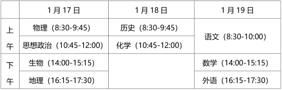 1月17日至19日,江苏省2026年普通高中学业水平合格性考试(笔试)举行。提醒考生留意交通和天气变化,合理规划赴考路线,预留充足时间提前抵达考点。(详情)