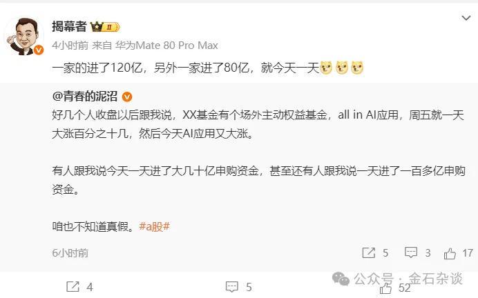 在AI应用板块被大量资金追捧的同时,市场传言德邦旗下某场外基金单日涌入资金高达120亿。有消息称,当天还有另一只基金也获得80亿资金申购。