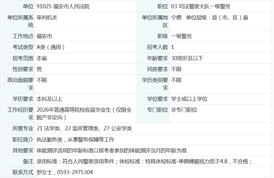 2026年福安市人民法院公务员招录公告:4个岗位等你来
