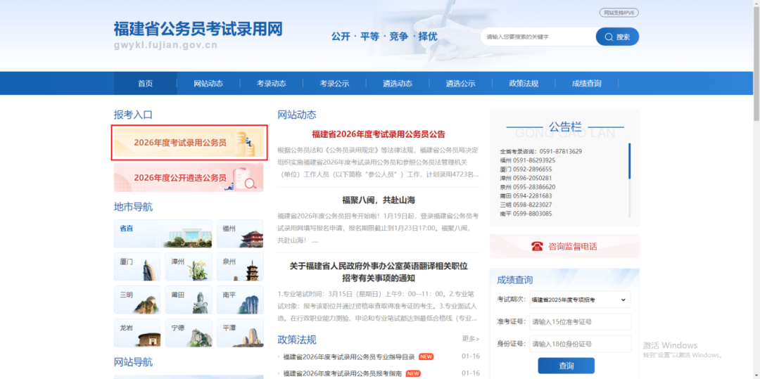 2026年福建省公务员考试