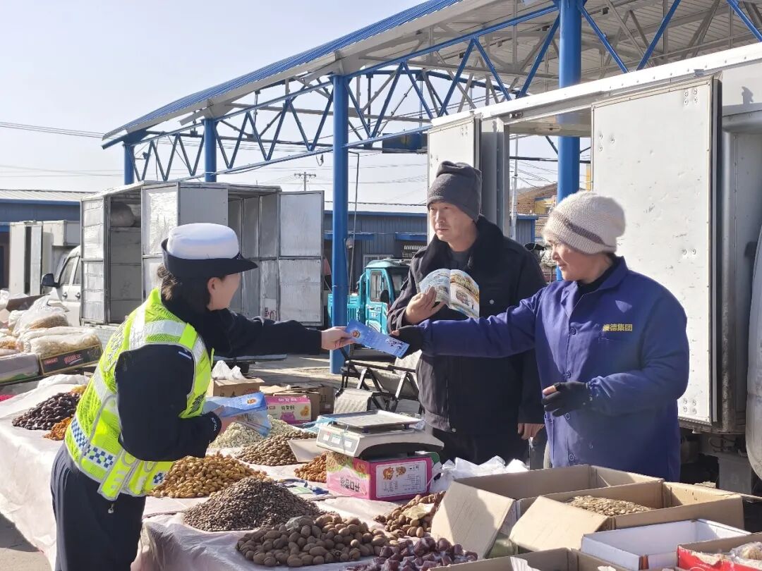 清晨的阳光为孪井滩生态移民示范区的戈壁镀上暖金色,焕新的农贸市场里烟火升腾。1月16日,阿拉善盟公安局交管支队宣传民警带着创新宣传理念与守护初心,在充满生机的集市中开展了一场兼顾“颜值与实效、诗意与安全”的宣传活动,让文明出行的种子在群众心间绽放平安之花。