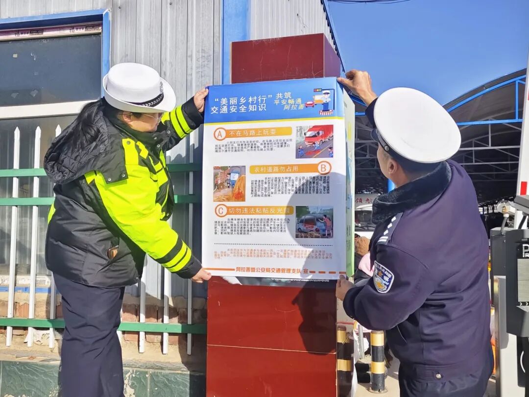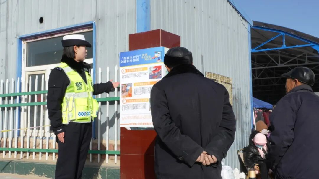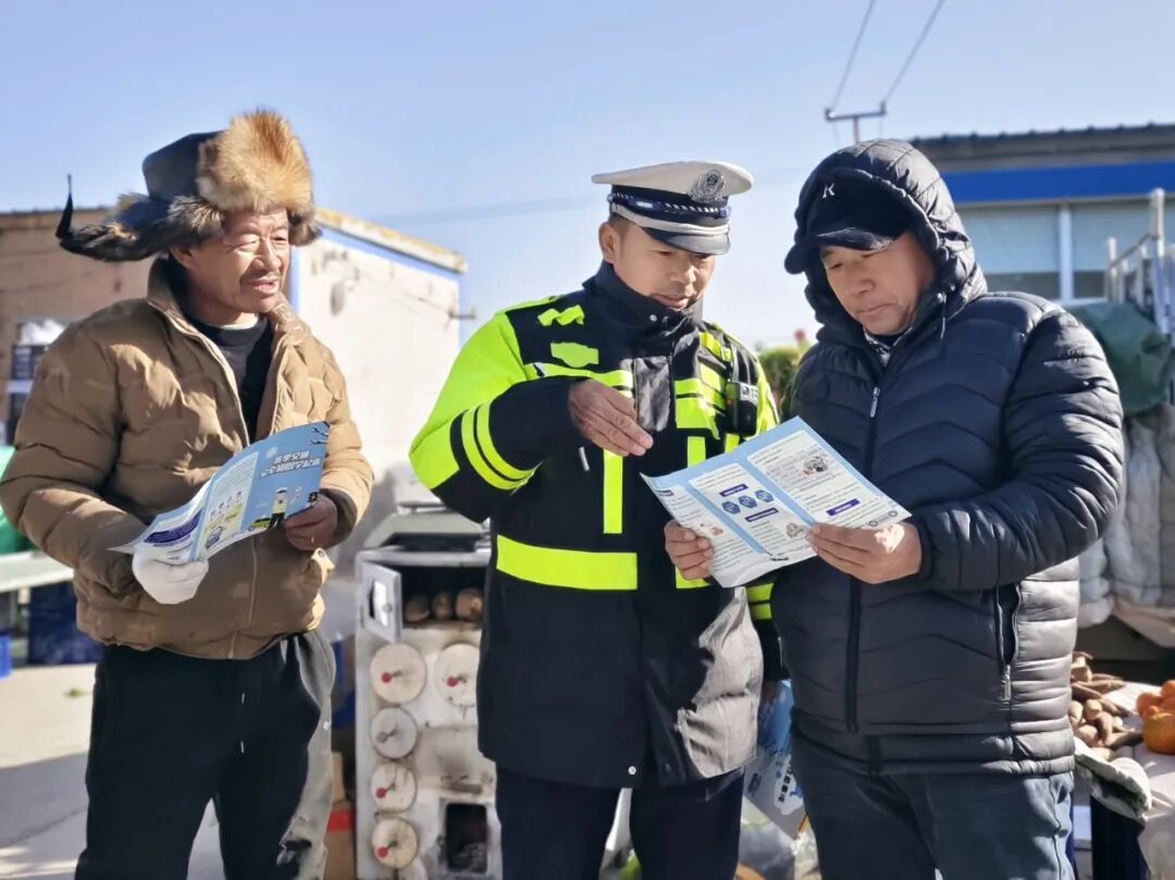 冬季来临,农牧区道路交通安全风险上升,为守护群众平安出行,阿拉善公安交警开展“美丽乡村行”主题交通安全宣传活动,通过精准宣讲、靶向警示,将安全理念送进农贸市集,筑牢冬季道路安全防线。