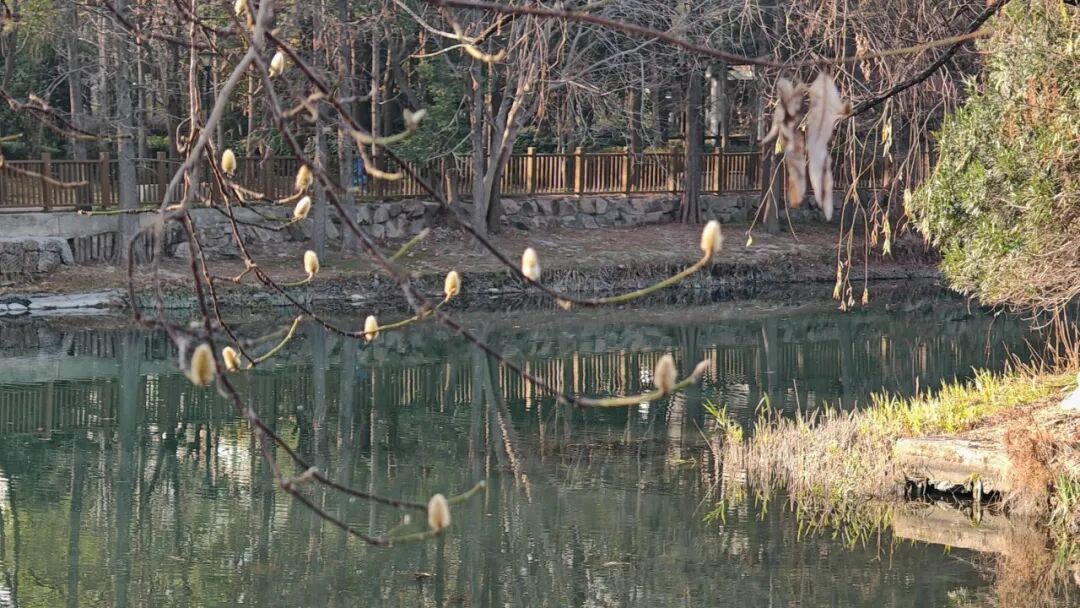 仔细看,绿道里已有春的萌动:蜡梅凌寒开放,暗香阵阵;玉兰枝上花苞鼓起,银杏新芽也在酝酿,枯荣间藏着待发的生命力。